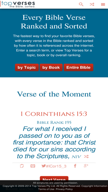 100%You can add the Random Top Verses Widget to your blog or web page. Super fast with no advertising. Change the colors, font and other attributes by updating the parameters. When you like the way it looks just copy the generated HTML code and paste it into your page where you want the widget to appear.
