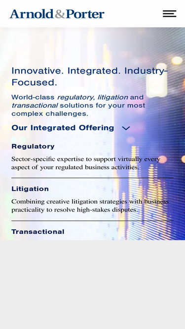 86%arnold & porter provides world-class regulatory, litigation and transactional solutions for your most complex challenges.