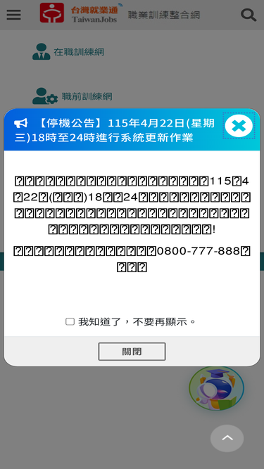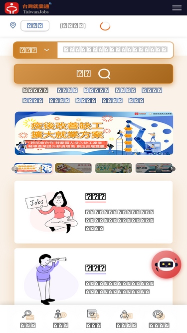 台灣就業通人生職涯好夥伴,企業徵才好幫手、求職網提供求職者多元化職缺、就業新聞、徵才活動訊息、產業、分眾與計畫專區、政策資源、職涯評測、升學就業地圖等豐富資訊,是您職涯發展路上的好夥伴。Taiwanjobs FindJob website provides diversity job openings, job information, recruitment events, industry, focus and planning section, policy resources, career evaluation, career maps and other information , which is a good partners for your career development.
