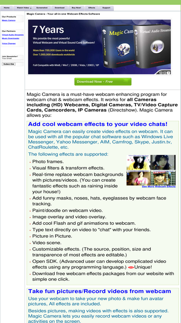 add 1000+ video effects to webcam/pictures/video chats/skype with magic camera webcam effects software; virtual webcam software that simulates webcam by files/screens; take pictures with effects