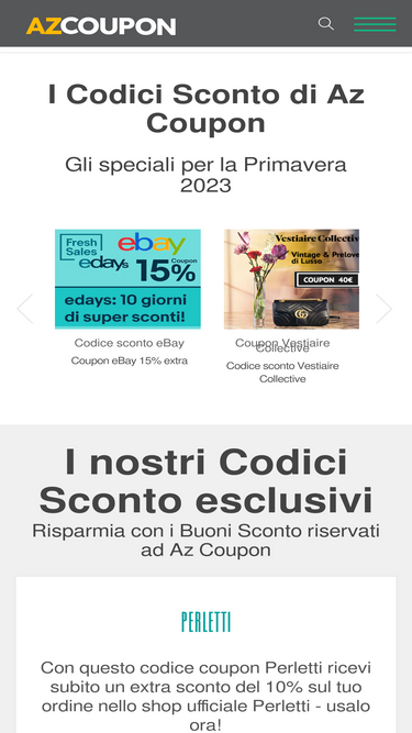 97%Tutti i codici sconto attivi sul sito. Ogni giorno nuovi coupon e codici sconto per farti risparmiare sui tuoi acquisti online