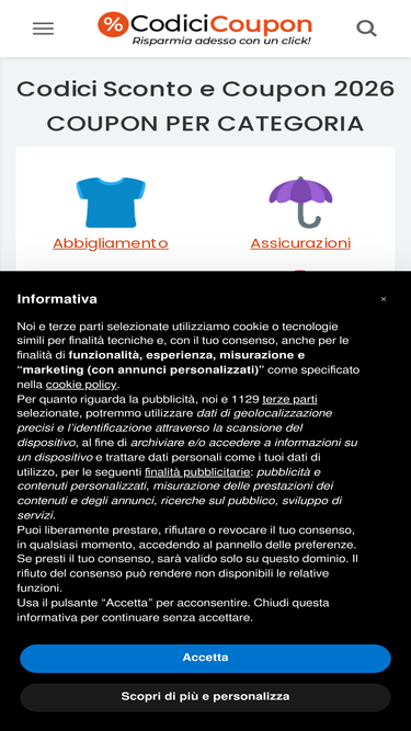 91%Risparmiare online: Codici sconto, Offerte e Consigli