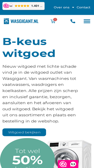 Nieuw witgoed met lichte schade vind je in de witgoed outlet van Wasgigant. Alle prijzen zijn scherp en inclusief garantie, bezorgen, aansluiten en het afvoeren van oud witgoed.