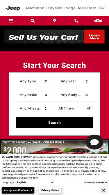 99%welcome to michiana chrysler dodge jeep ram. we're a full service dealership serving the mishawaka area. shop online or schedule vehicle service with us.