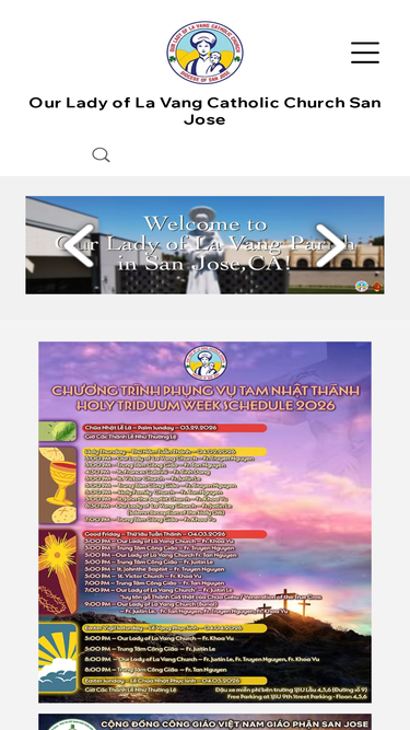 74%Welcome to Our Lady of La Vang Catholic Church in San Jose, California. Join us in building a community united in love, through living as a witness to the Gospel and in union with the Lord, following the example of Mary through the celebration of the sacramental liturgy and prayer of honor, formation of faith and spiritual life, promoting youth pastoral activities, developing Catholic associations, and promoting family life according to Vietnamese Catholic cultural traditions. All are welcome!
