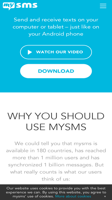86%the mysms family of applications helps you text anywhere and enhances your messaging experience on your smartphone, tablet and computer.