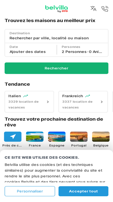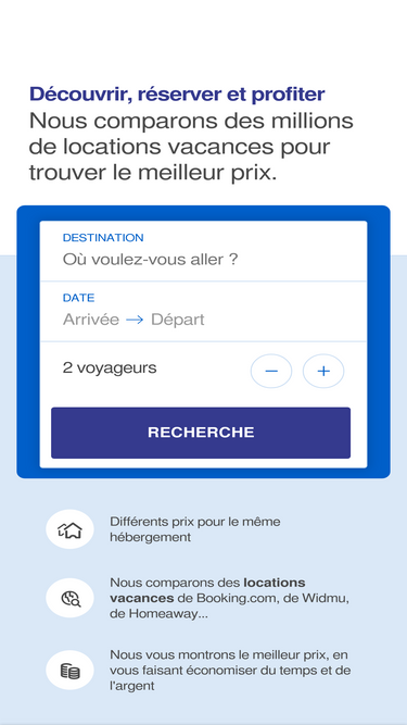 100%700 000 de villas, de maisons et d’appartements pour des vacances.