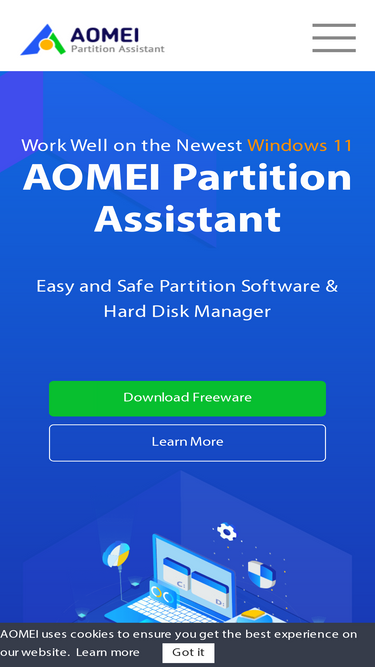 77%AOMEI Partition Assistant offers various software utilities to safeguard your data and improve productivity, including partition manager, data recovery software, and PC cleaner software.