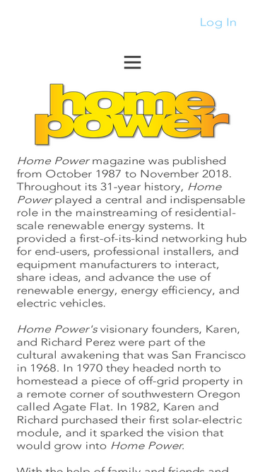 An archive of the complete 31-year history of Home Power magazine. 188 digital back issues capture a three decade history of the renewable energy movement in the U.S. and beyond. Each issue is available for non-commercial use at no cost to registered members of this site.