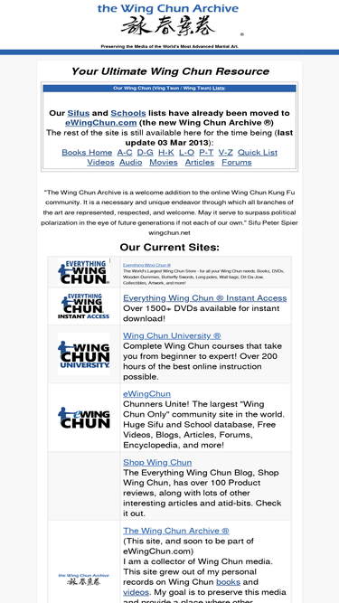 100%the wing chun archive keeps lists of wing chun (ving tsun / wing tsun)kung-fu books, videos, dvds, movies, sifus, schools, wooden dummy, butterfly swords, long poles, articles and more!