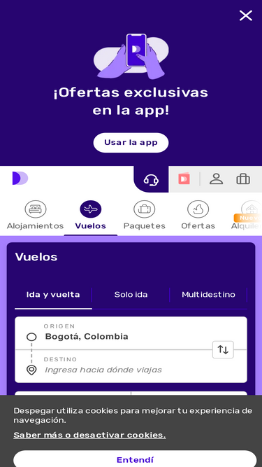 82%Despegar es la agencia líder en viajes de Colombia y Latinoamérica. Tiquetes, alojamientos, paquetes, actividades, alquiler de carros y mucho más.