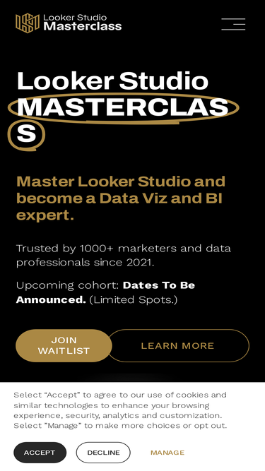 100%Learn how we use cookies and trackers to improve user experience and customize services on Looker Studio Masterclass.