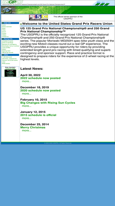 38%The USGPRU is the officially recognized 125 and 250 GP US National Championship series. The USGPRU provides a unique opportunity for young riders by providing extended length grand prix racing exclusive to the 125GP and 250GP machines with timed qualifying and superb contingency and sponsor support.