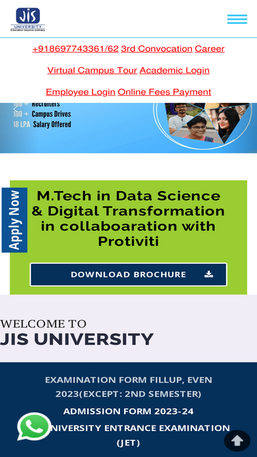 67%JIS University is the best private university in Kolkata, offering courses in Engineering, Science, Pharmacy, Law, and Management studies. Apply Now