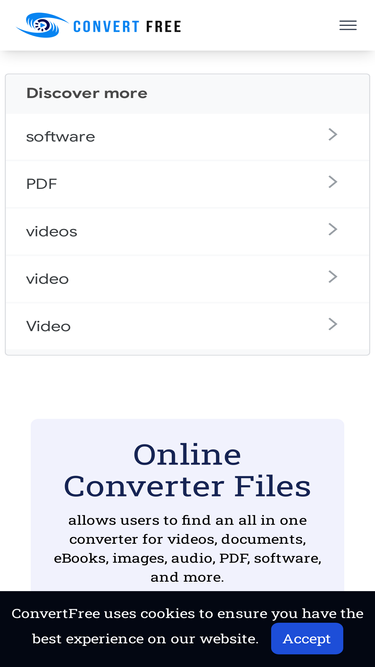 88%convert files from one format to another such as word to pdf, pdf to jpg, epub to mobi, webp to jpg, svg to png, mov to mp4, mp4 to mp3, m4a to mp3.