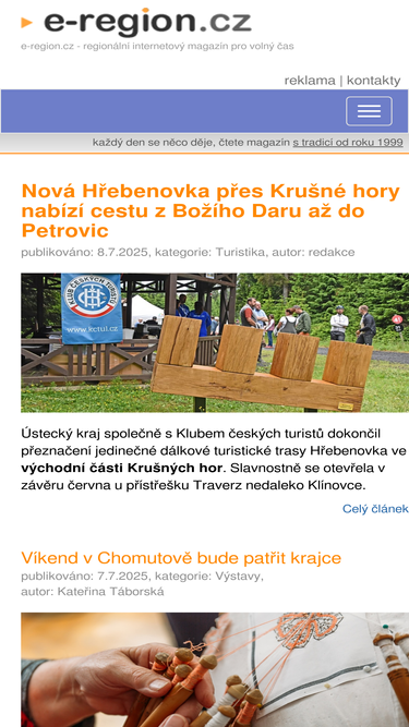 100%e-region.cz, regionální internetový magazín pro volný čas - Mostecko, Teplicko, Chomutovsko, Lounsko, Krušné hory, České středohoří