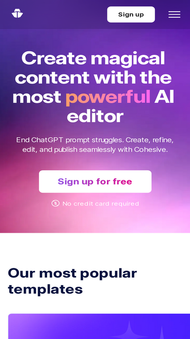 80%Experience productivity boost with Cohesive, where the power of human creativity meets the brilliance of AI. Seamlessly create, refine, edit, and publish your work with ease.