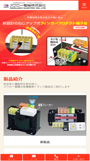 69%スワロー電機株式会社は、各種電源トランスの製造販売を行っています。業界初のねじアップ式端子台を備えたトランスなど、作業時間の削減、作業効率や安全性の向上など、進化したトランス製品をご提供しております。