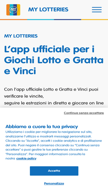 90%scarica l’app my lotteries: verifica le vincite gratta e vinci, segui le estrazioni del lotto, 10elotto e millionday e gioca online. disponibile per ios su apple store e per android.
