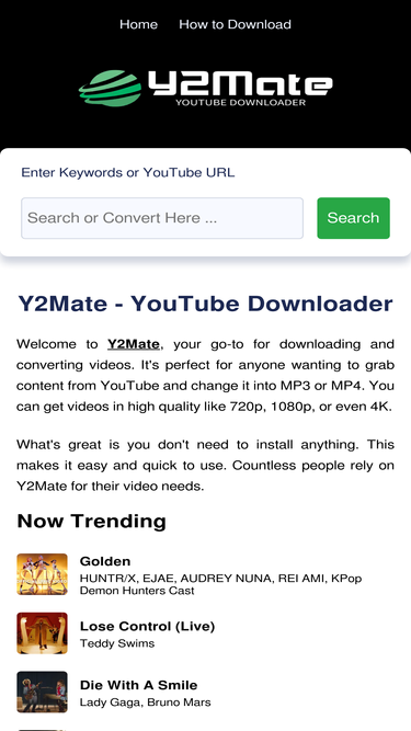 100%Download YouTube videos and MP3s quickly and easily with Y2Mate. Enjoy high-quality content offline without any hassle. Try Y2Mate now for fast, reliable downloads!