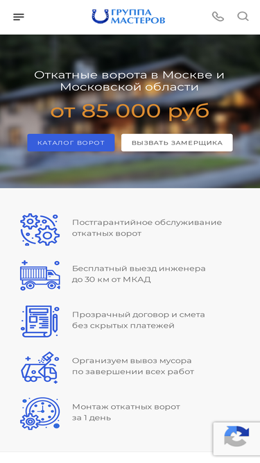 98%Компания «Группа мастеров» занимается производством и установкой откатных ворот различной степени сложности с 2007 года. У нас вы можете заказать установку ворот «под ключ», а такаже купить комплектующие и автоматику