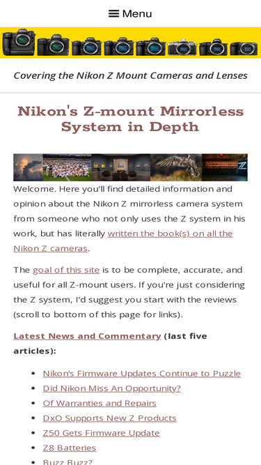 80%web site covers the nikon z mirrorless camera and lens system