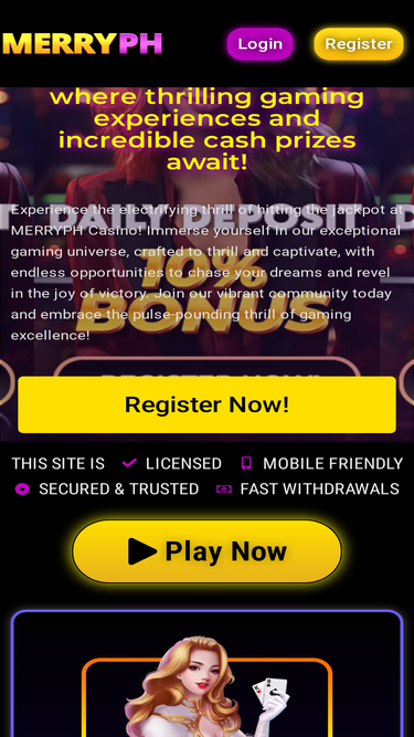 MERRYPH is the Philippines' newest online casino for 2024. Welcome to MERRYPH, where thrilling gaming experiences and incredible cash prizes await!