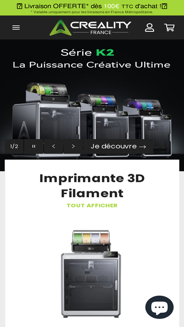[shortdesc] Creality Hi - Impression Rapide et Facile La Creality Hi est facile à démarrer et accompagnée d’un guide intuitif. Son extrudeuse intégrée est conçue pour éviter les obstructions et simplifier l’entretien. Les étalonnages automatiques prennent en charge la mise à niveau, la lecture du filament et l’ ajustement sans intervention. Construite en alliage d’aluminium, elle allie robustesse et élégance, tout en offrant une vitesse d’impression remarquable, atteignant 500 mm/s avec une accélération impressionnante de 12 000 mm/s². Boosté par des moteurs pas à pas FOC La Creality Hi utilise des servomoteurs pas à pas avec des algorithmes FOC pour déplacer les axes X et Y. Ainsi, vous aurez des mouvements ultra-fluides et silencieux, même quand elle imprime à une vitesse impressionnante de 500 mm/s. Mise en forme active des entrées La Creality Hi utilise un algorithme unique qui analyse les vibrations à différentes vitesses d'impression et génère des signaux opposés pour les annuler. Ainsi, vous aurez des impressions plus rapides, moins de bruits et des surfaces très lisses. Aussi stable qu'élégant Avec son corps tout en métal et ses pièces monocoques moulées en alliage d’aluminium, cette imprimante allie élégance et stabilité, réduisant au maximum les vibrations. Elle est équipée d’un rail linéaire sur l’axe X et de deux tiges linéaires sur l’axe Y. Sa structure rigide et ses mouvements fluides garantissent une qualité d’impression nettement améliorée. Écran tactile 3,2" rabattable et appareil photo sécurisé Pas besoin d’assemblage. L'écran réagit au moindre toucher, se replie facilement pour gagner de la place. Gardez un œil sur vos impressions grâce à la surveillance vidéo intégrée. Partagez facilement une vidéo accélérée en un clic, et profitez d’un cache-caméra pour protéger votre vie privée. Capteur haute sensibilité La tête d'outil est équipée d'une jauge de contrainte qui sonde automatiquement le plateau pour un nivellement ultra-précis. Vis