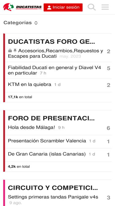 Bienvenido al mayor foro Ducati en español. Comparte experiencias, resuelve dudas técnicas, descubre preparaciones, rutas, concentraciones y novedades de todos los modelos: Panigale, Multistrada, Monster, Hypermotard, Scrambler, Diavel, DesertX y más. Únete a miles de ducatistas de todo el mundo.