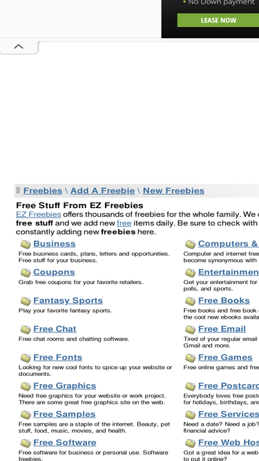 ez freebies has free stuff in hundreds of categories. find free games, free screensavers, free internet service, free email, free downloads, free mp3 files, free clipart, free fonts, free greeting cards, free movies, and tons more!