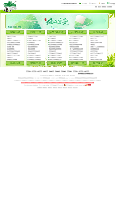 晋江文学城(www.jjwxc.net)创立于2003年8月,是具备相当规模女性网络文学原创基地。站内作品题材多样,包括言情小说、纯爱小说、都市小说、玄幻小说等260余万部,已诞生出花千骨、何以笙箫默等上百部热门影视剧作品。晋江文学城已经从一个简单的文学爱好者集散地快速且稳健地成长为行业内的翘楚。