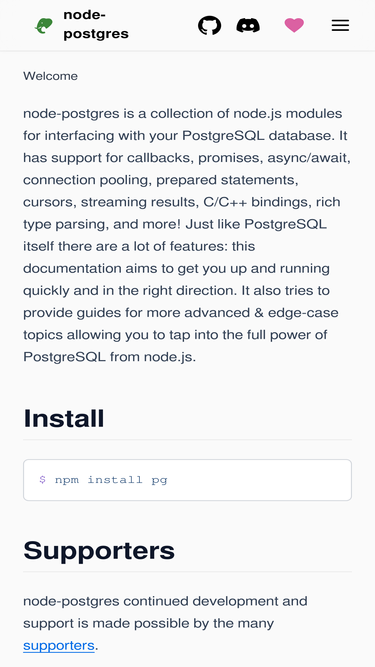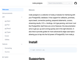 74%node-postgres is a collection of node.js modules for interfacing with your postgresql database.