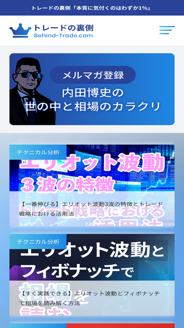 「トレードの裏側」は、トレードのノウハウと、テクニカル分析や相場の知識を提供しています。メルマガでトレードに関する無料講座も開催しています。 記事の執筆者は、テレビや雑誌などで相場を評論するだけの自称専門家ではなく、トレ …