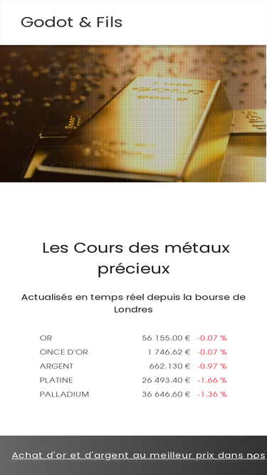 Achetez et vendez votre or et métaux précieux chez Godot & Fils à Antony. Profitez des meilleurs prix et conseils d’experts dans notre agence.