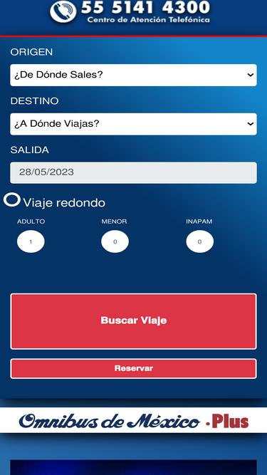 Omnibus de México compra en línea tus boletos de autobús y obtén 5% de descuento en viaje sencillo y 10% en viaje redondo más meses sin intereses ó pagos diferidos *Aplican restricciones*