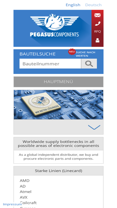 globaler unabhängiger distributor elektronischer bauteile mit eigenem lager. beschaffung von abgekündigten und schwer auffindbaren elektronischen bauteilen, sowie vermittlung von überbeständen.