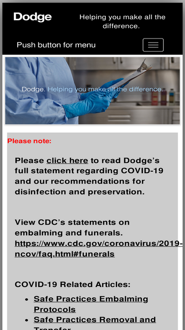 Dodge is the world's largest supplier of embalming chemicals, instruments, supplies, urns and more.
