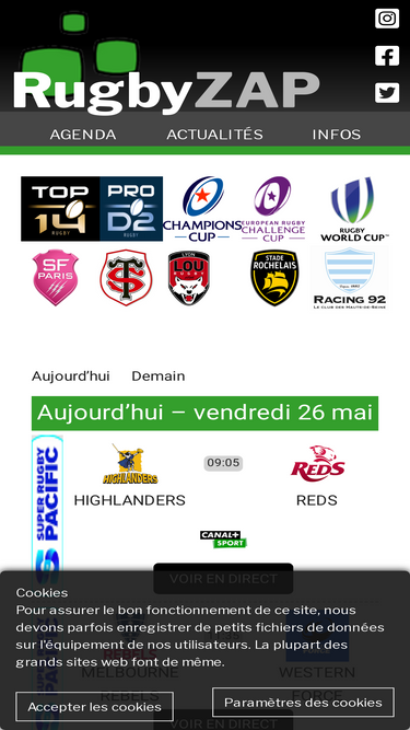 97%Découvrez toute l'actualité du rugby sur Rugbyrama : résultats, classements, analyses, interviews exclusives et vidéos des plus grands championnats. Suivez en direct le Top 14, Pro D2, Champions Cup, le XV de France...