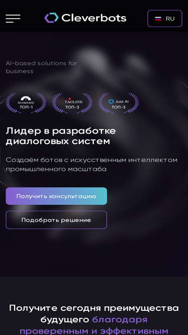 88%Cleverbots - лидер в разработке диалоговых систем ➔ Чат-боты, компьютерное зрение, анализ данных, речевые технологии для Enterprise ➔ info@cleverbots.ru.