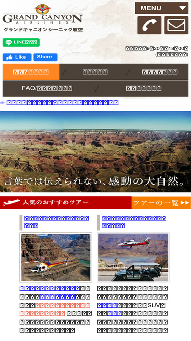 世界遺産グランドキャニオンの飛行機やヘリコプターによる遊覧ツアー、陸路で行くバスツアー、グラスブリッジのスカイウォーク体験など豊富な種類。アンテロープキャニオンのツアーもございます。