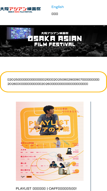第19回大阪アジアン映画祭は2024年3月1日(金)〜10日(日)の日程で開催します。