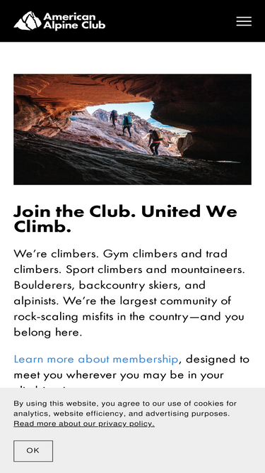 The American Alpine Club is a 501(c)(3) charitable organization. Our vision is a united community of competent climbers and healthy climbing landscapes.