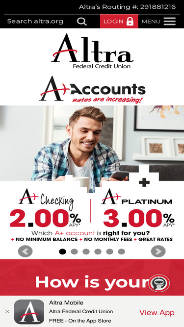 Altra Federal Credit Union is a nonprofit financial cooperative with locations in eight states. Our members benefit from our competitive products and services with low rates and fees. Our primary concern is our members' financial success! Start enjoying the benefits of membership today!