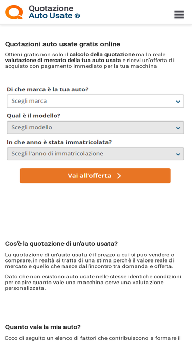 Guarda le quotazioni di auto usate, ottieni una valutazione professionale gratis e una offerta di acquisto in contanti se vuoi vendere la tua macchina usata