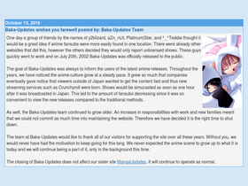 シミラーウェブの月間訪問数データによると、11月 2025におけるanime-update.com最大の競争相手は fansubsupdate.comで、その訪問数は --です。anime-update.comに類似するサイトの2番目は akibatan.comで、 11月 2025における訪問数は--です。3番目は baka-updates.comで、訪問数は1.6Kです。