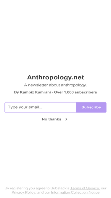 66%A newsletter about anthropology. Click to read Anthropology.net, a Substack publication with thousands of subscribers.