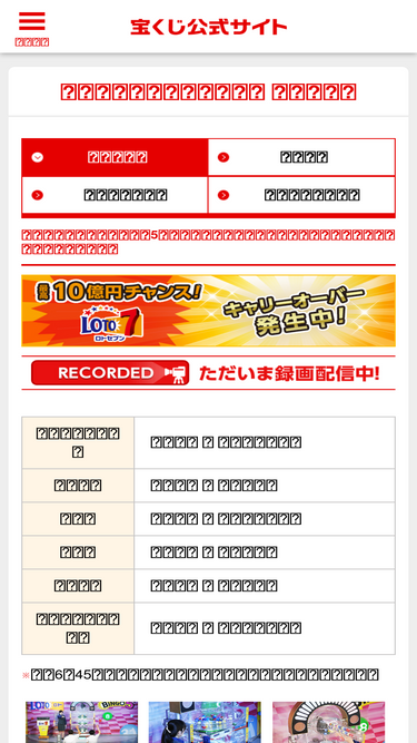 数字選択式宝くじ抽せん会 ライブ中継のバックナンバーです。【宝くじ公式サイト】では、ジャンボ宝くじ等の普通くじ・スクラッチ・ロト7・ロト6・ミニロト・ビンゴ5・ナンバーズ4・ナンバーズ3・着せかえクーちゃん・クイックワンといった各宝くじの特徴や、宝くじ公式サイトでのネット購入方法をはじめ、宝くじ売り場情報、宝くじの発売スケジュールなどをご紹介。