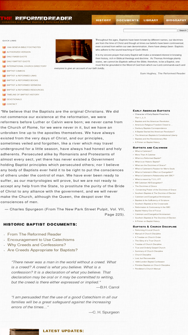 the reformed reader is committed to the historic baptist and reformed faith. learn and research baptist history, doctrine, theology and biographies.