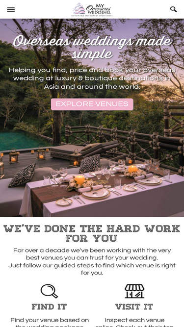 helping you find, price and book your overseas wedding at luxury & boutique destinations in asia and around the world. see wedding packages and get instant quotes.