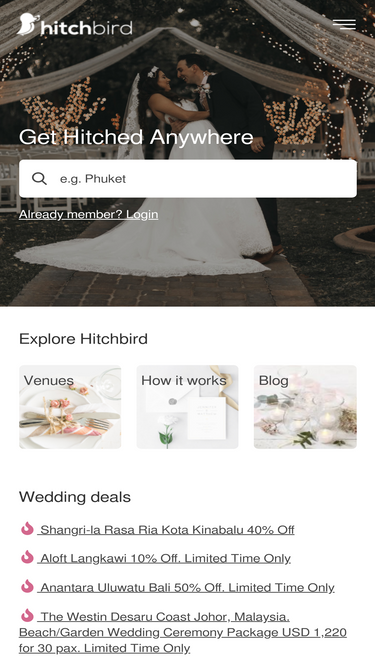 let hitchbird plan your perfect destination wedding anywhere in asia. compare prices and read reviews for the best destination wedding venues in asia.